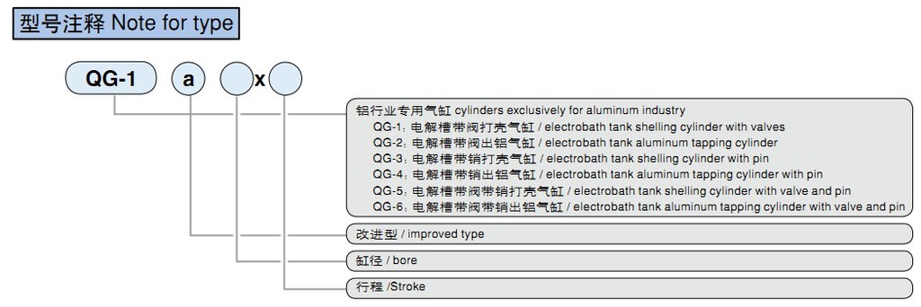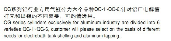 QG系列鋁行業專用氣缸分為六個品種QG-1~QG-6,針對鋁廠電解槽