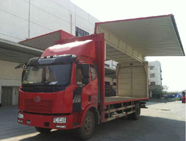 華通氣動公司生產的氣動控制系統、氣動執行元件,目前已成功用于翼開啟廂式運輸車或開啟雙后門的專用車輛。 由于翼開啟廂式運輸車具有裝卸速度快,效率高,可側面上卸貨等優點,已經是現代物流企業十分青睞的運輸工具! 主要特點: 4個定制氣缸,兩側獨立舉升工作,互不影響,舉升高度超過車廂,展開角度大于等于89°。 兩翼側板可升降、開啟,且最大能夠疊放于頂板之上,使兩側部位完全敞開,極大地方便裝卸貨物。 |
